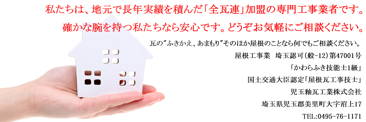 このマークが目印です かわらぶき技能士、瓦屋根工事技士、瓦屋根診断技士を擁する屋根のプロ集団、全瓦連。 全瓦連は、国土交通省に認められた全国団体で、約130の地域組合、各種資格者を擁する約4,400の事業所から構成されます。国家資格の「かわらぶき技能士(1級、2級)」や、国土交通大臣認定「瓦屋根工事技能士」の資格取得の促進、「瓦屋根診断士」制度の確立など、社会に貢献する団体として全国的に活動を展開しています。